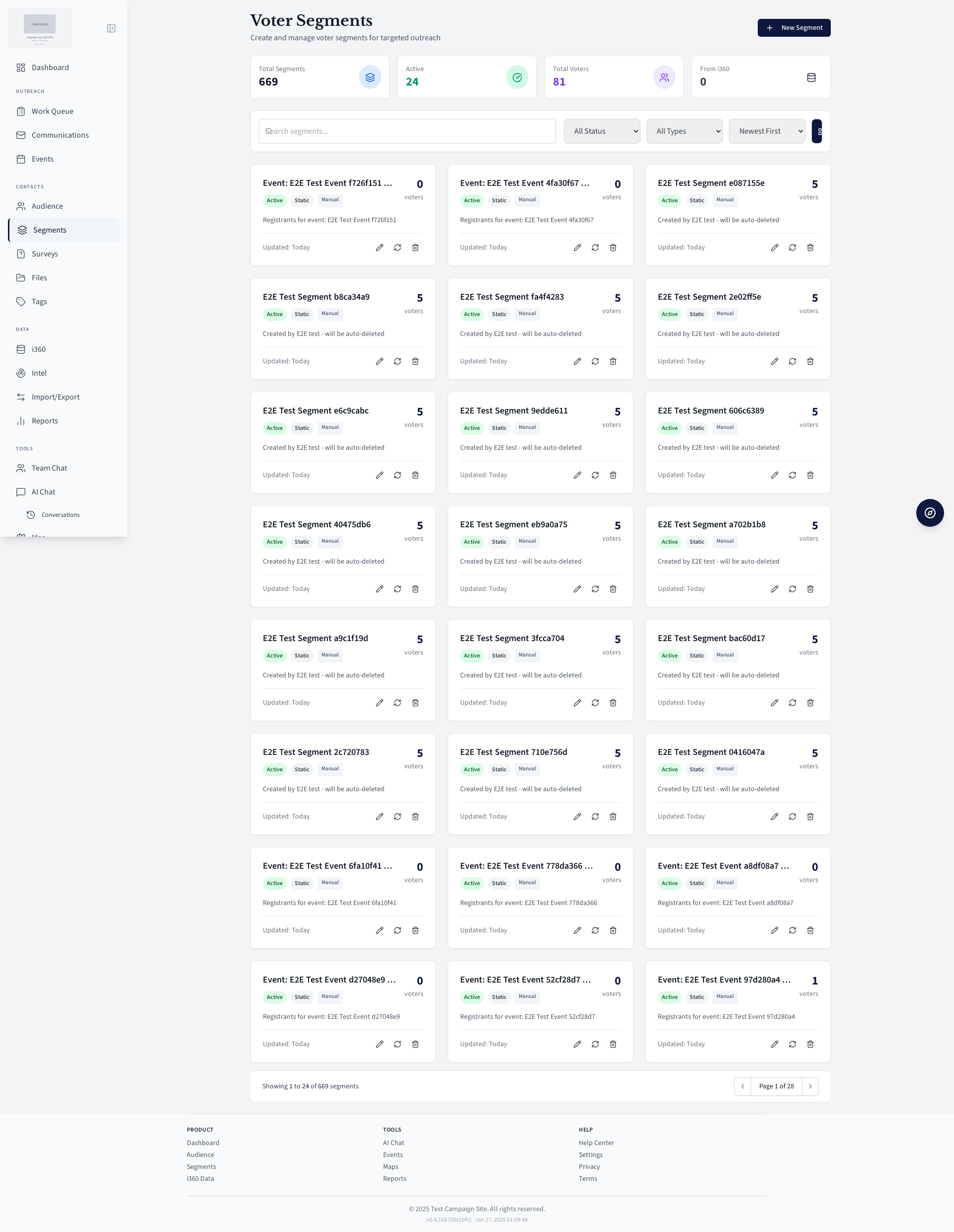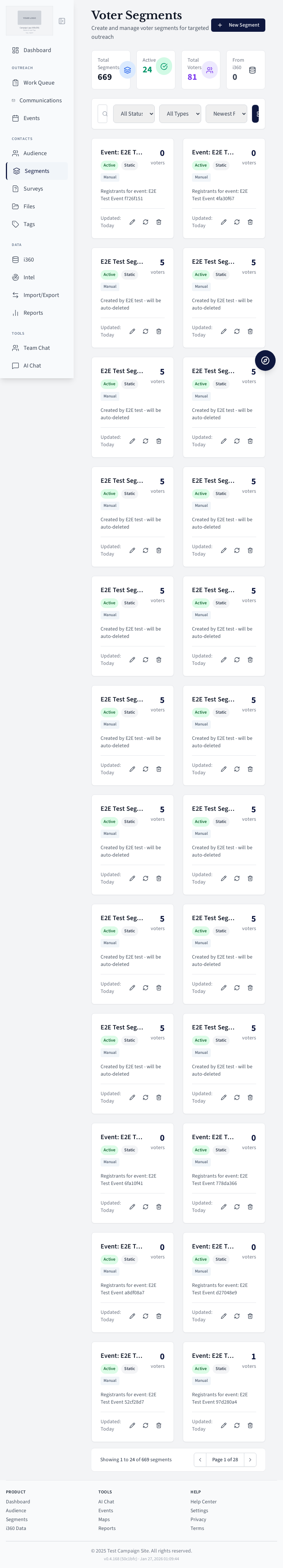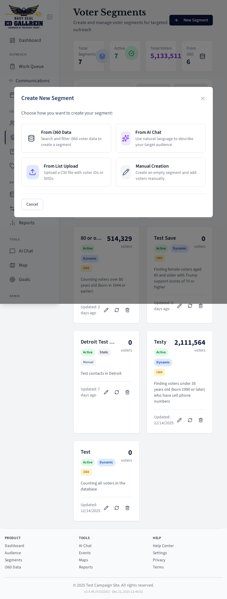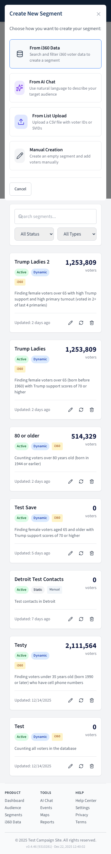 Voter segment management page.