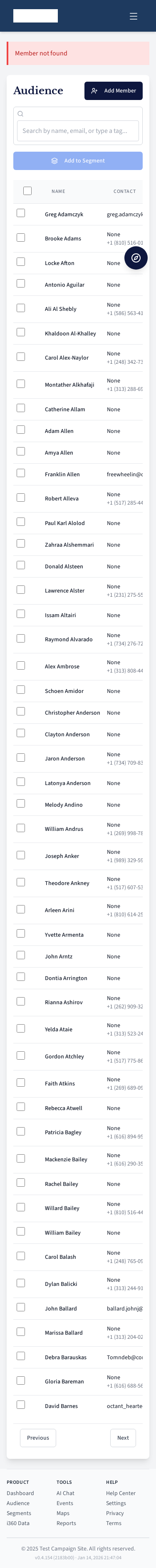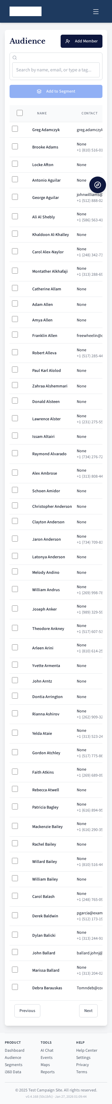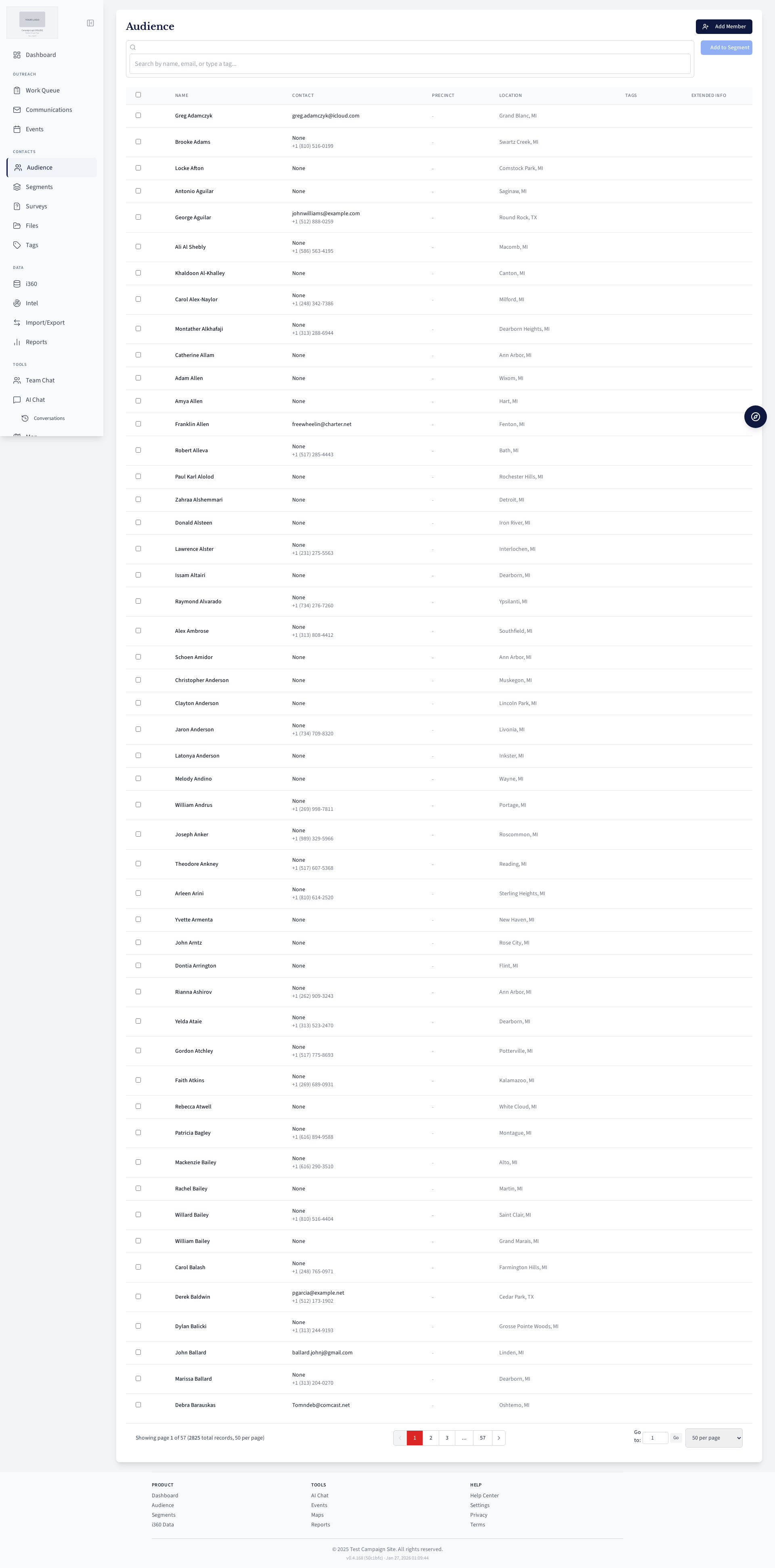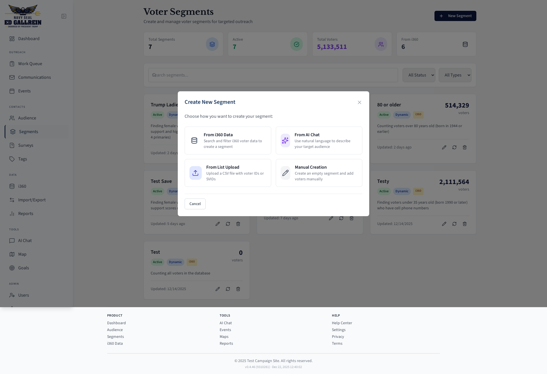 Voter segment management page.