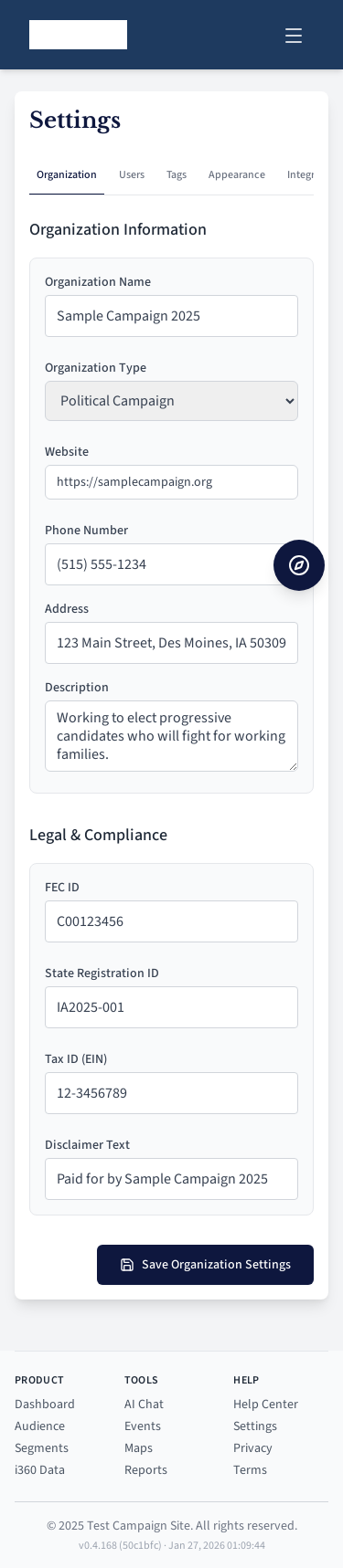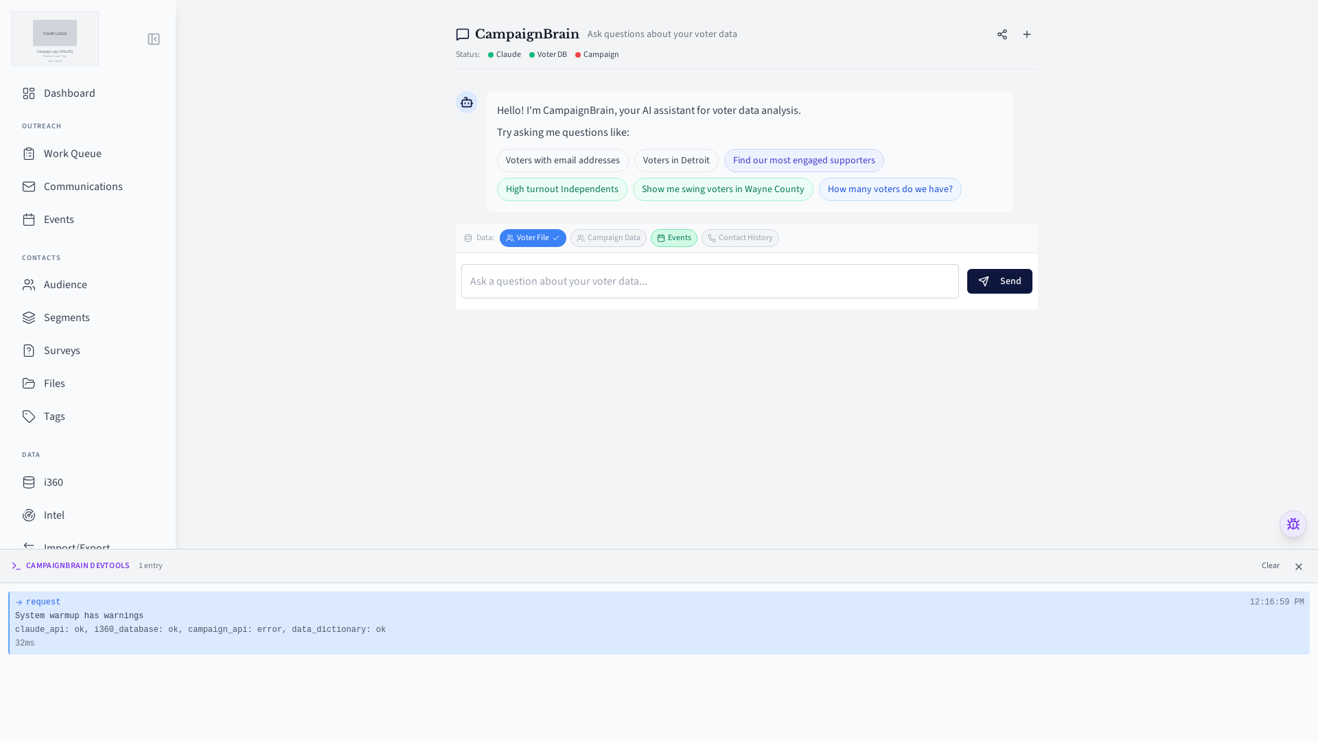 CampaignBrain App Screenshots¶