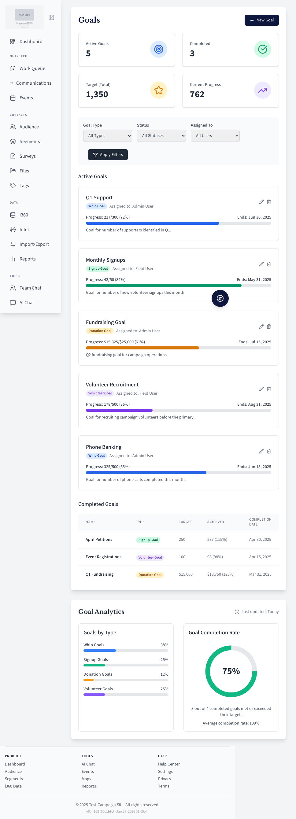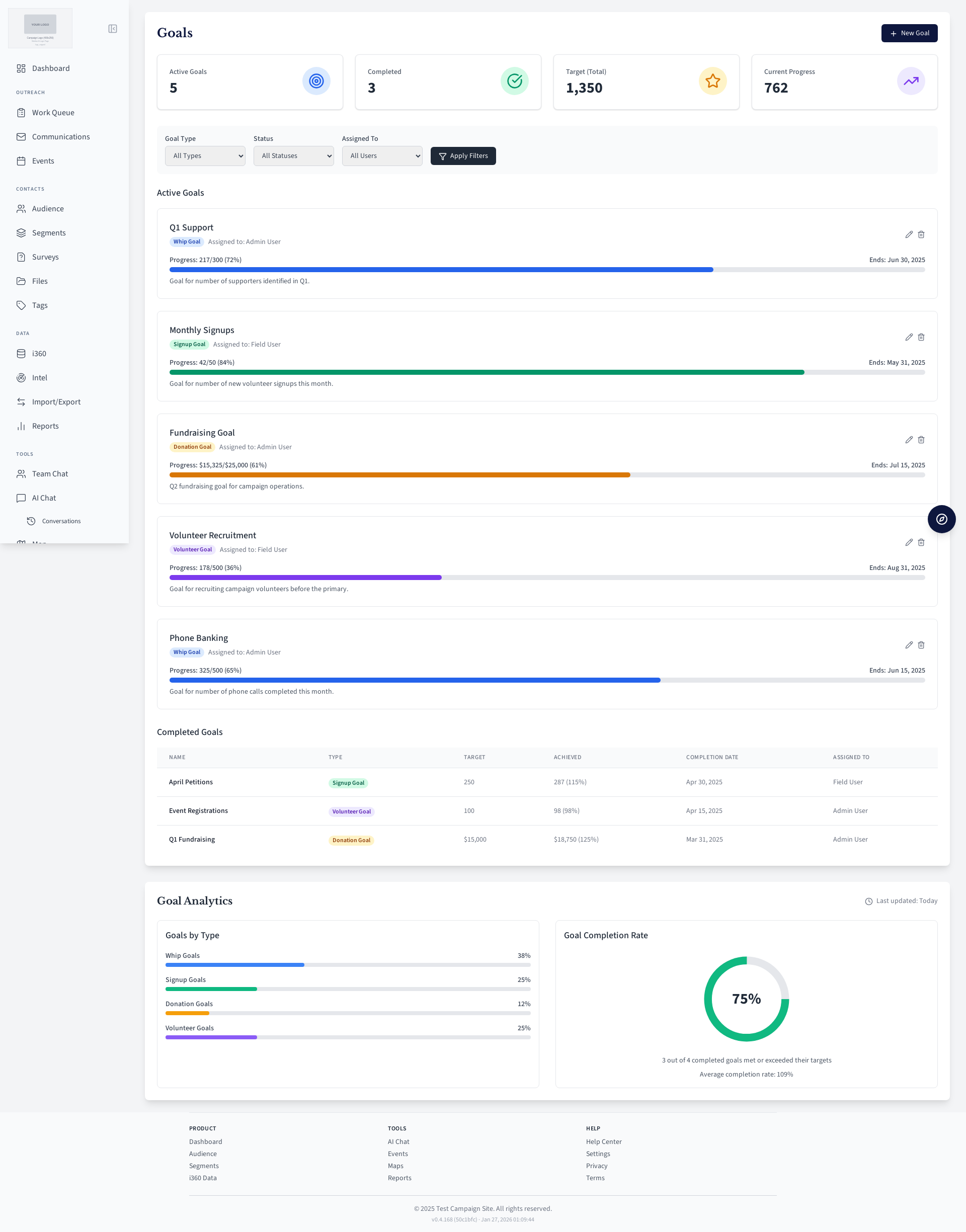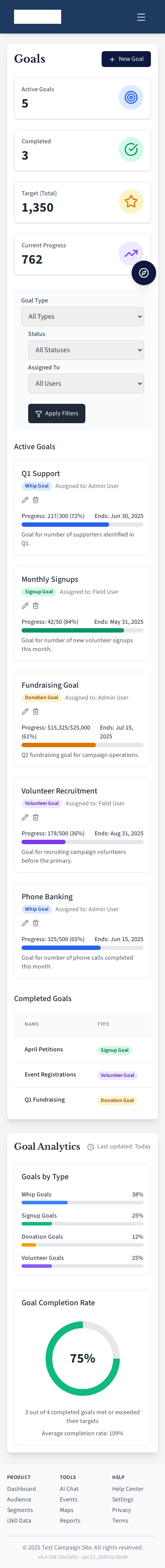 Campaign goal tracking.