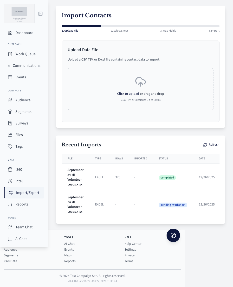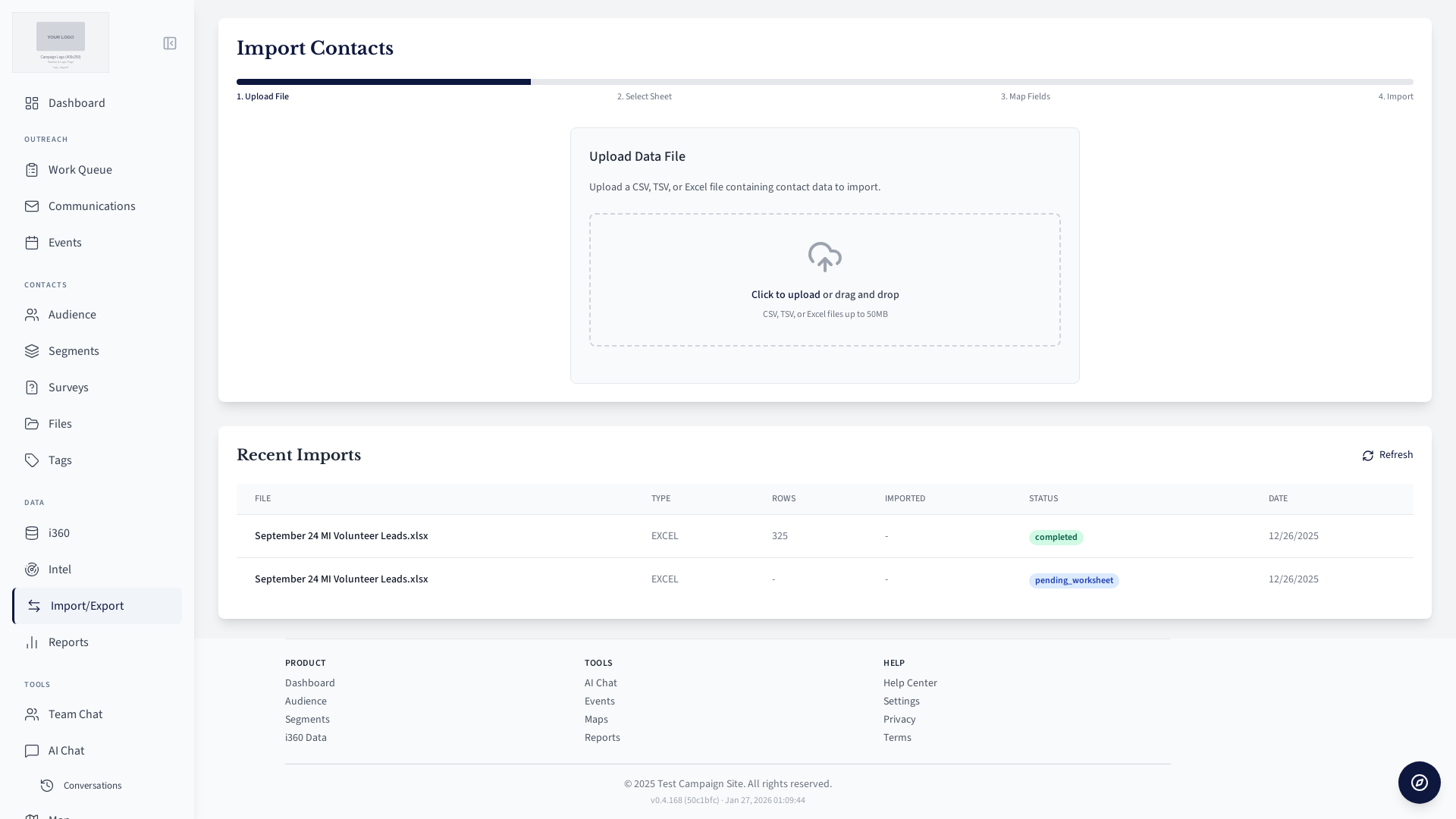 Bulk contact import tool.
