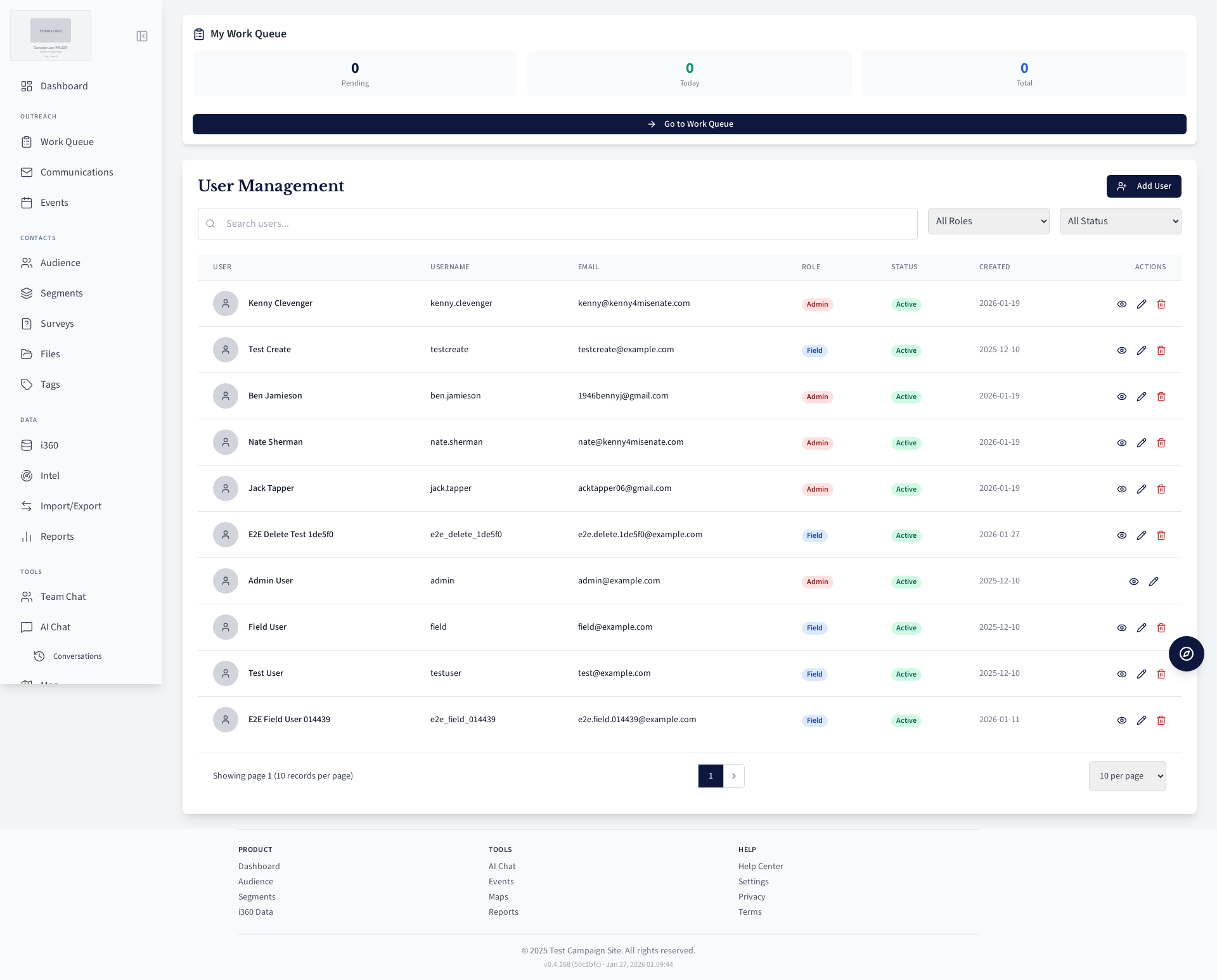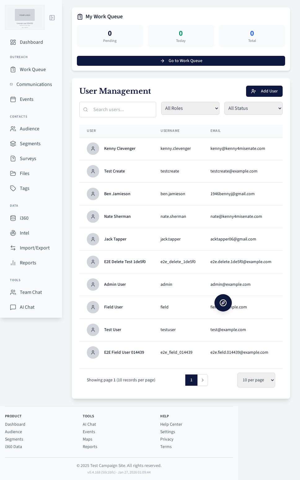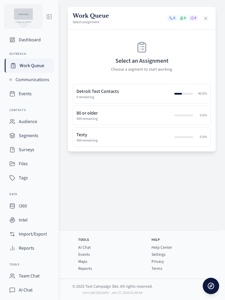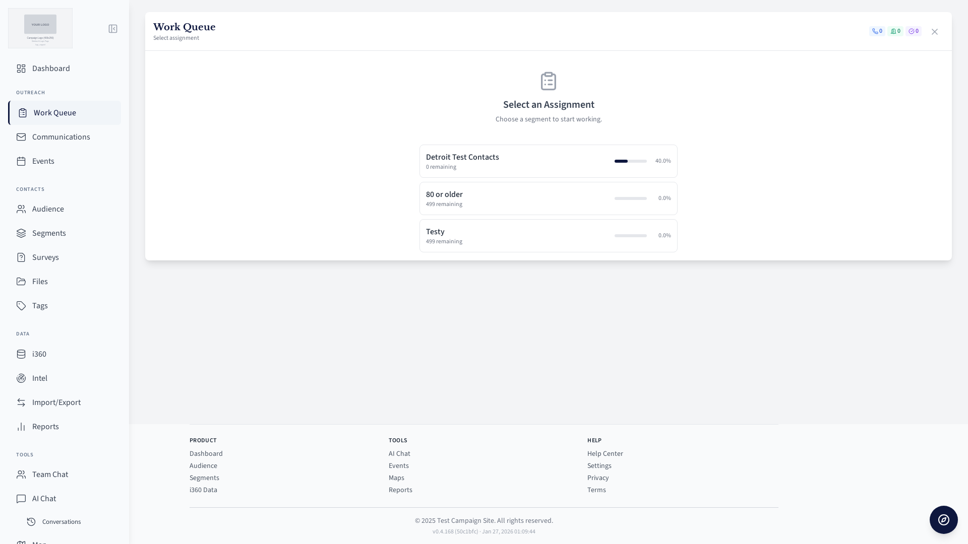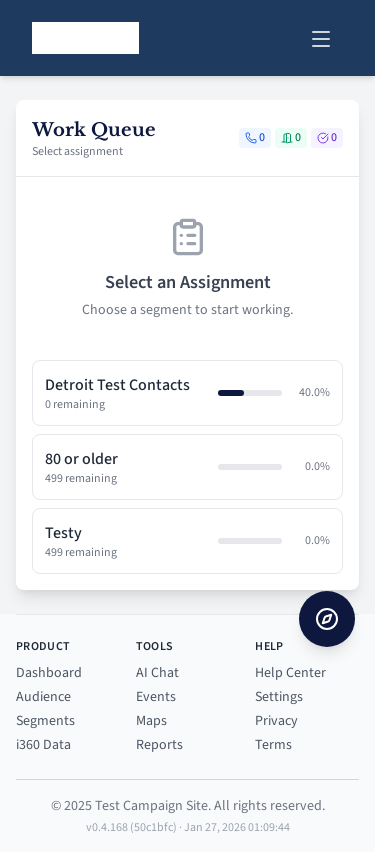 Field user work queue for contacting voters.