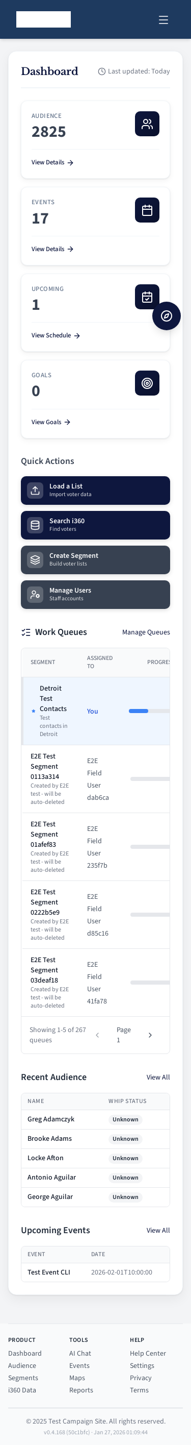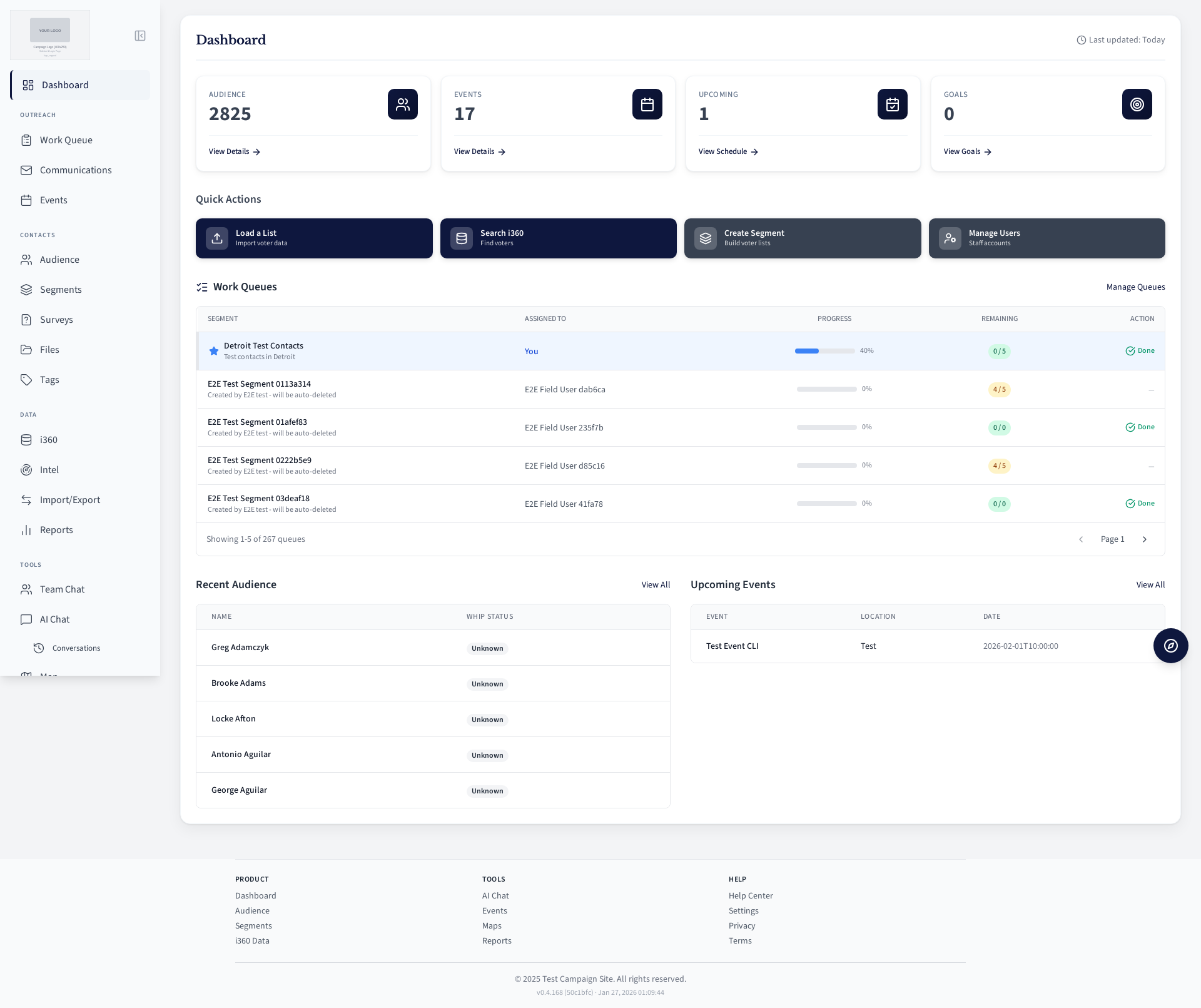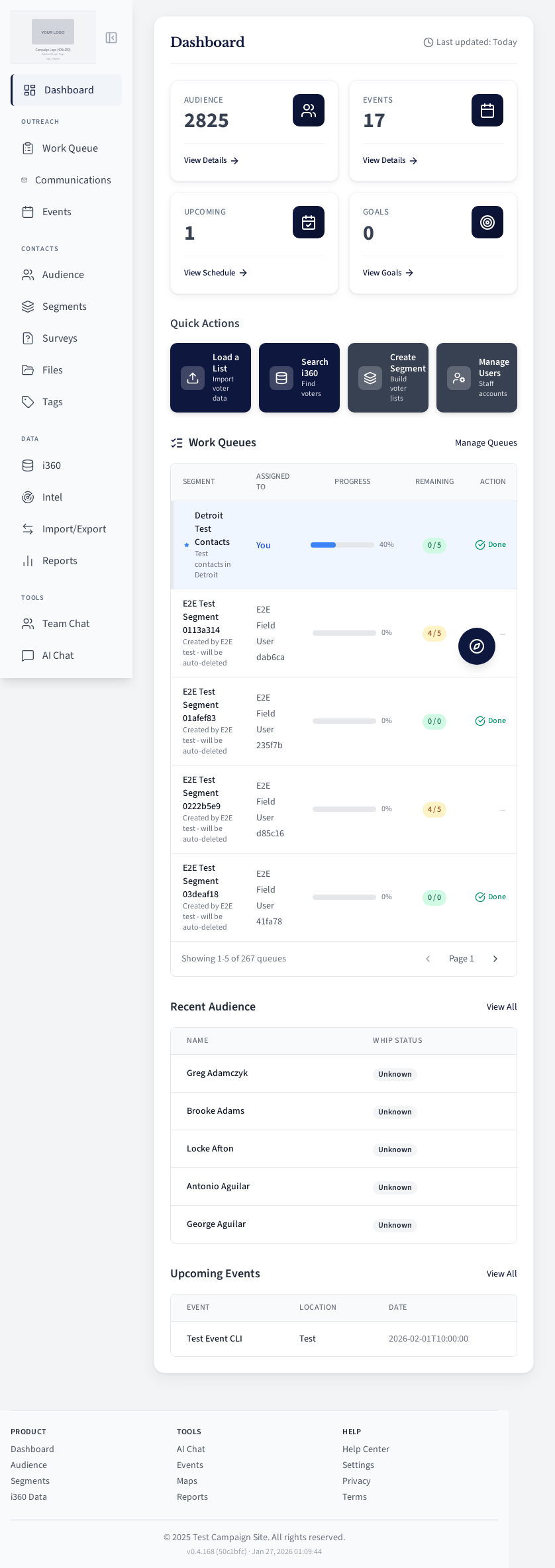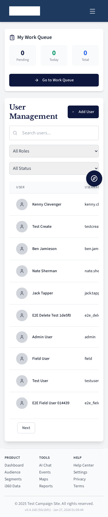 Field user work queue for contacting voters.