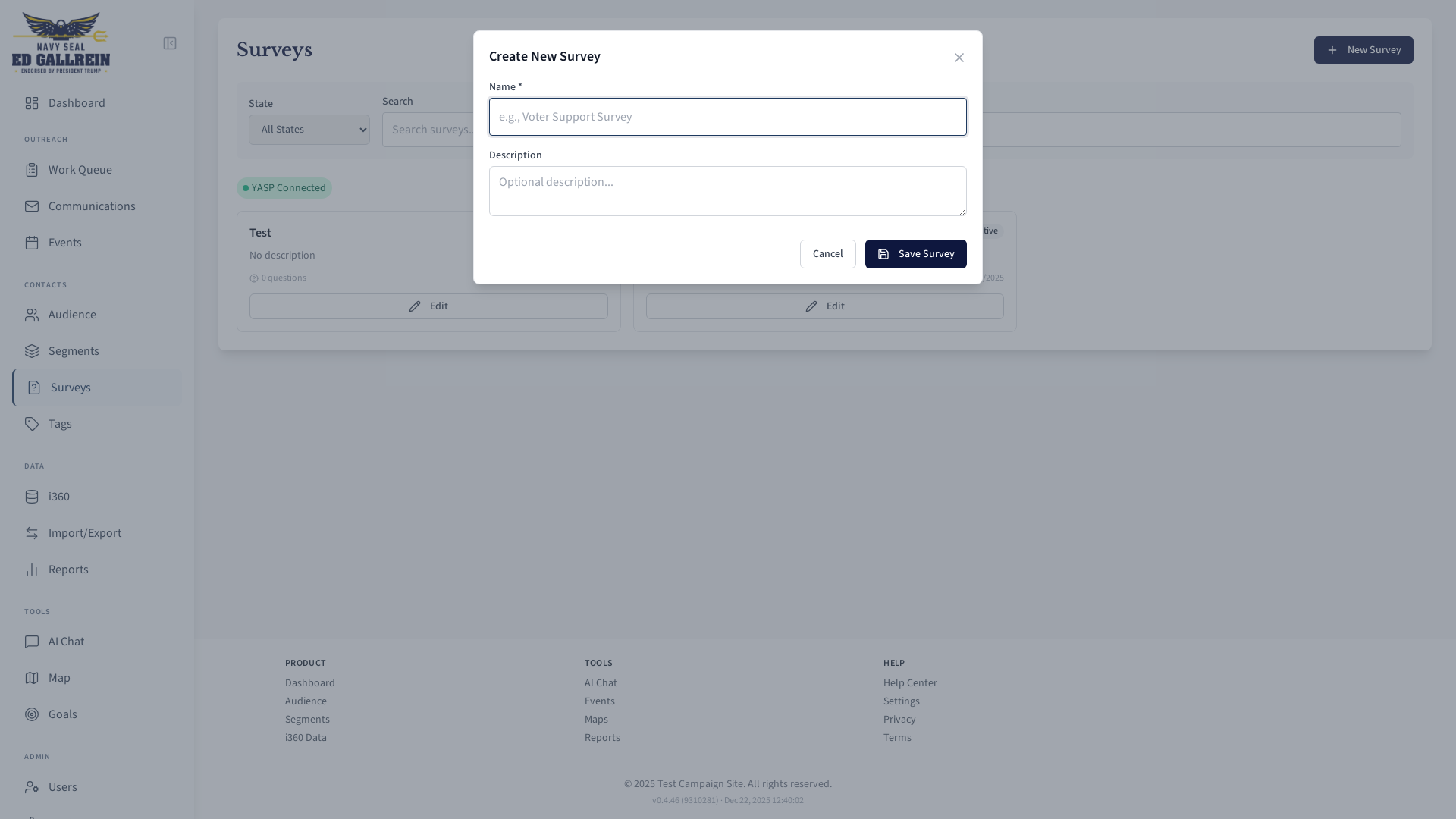 Survey creation modal.