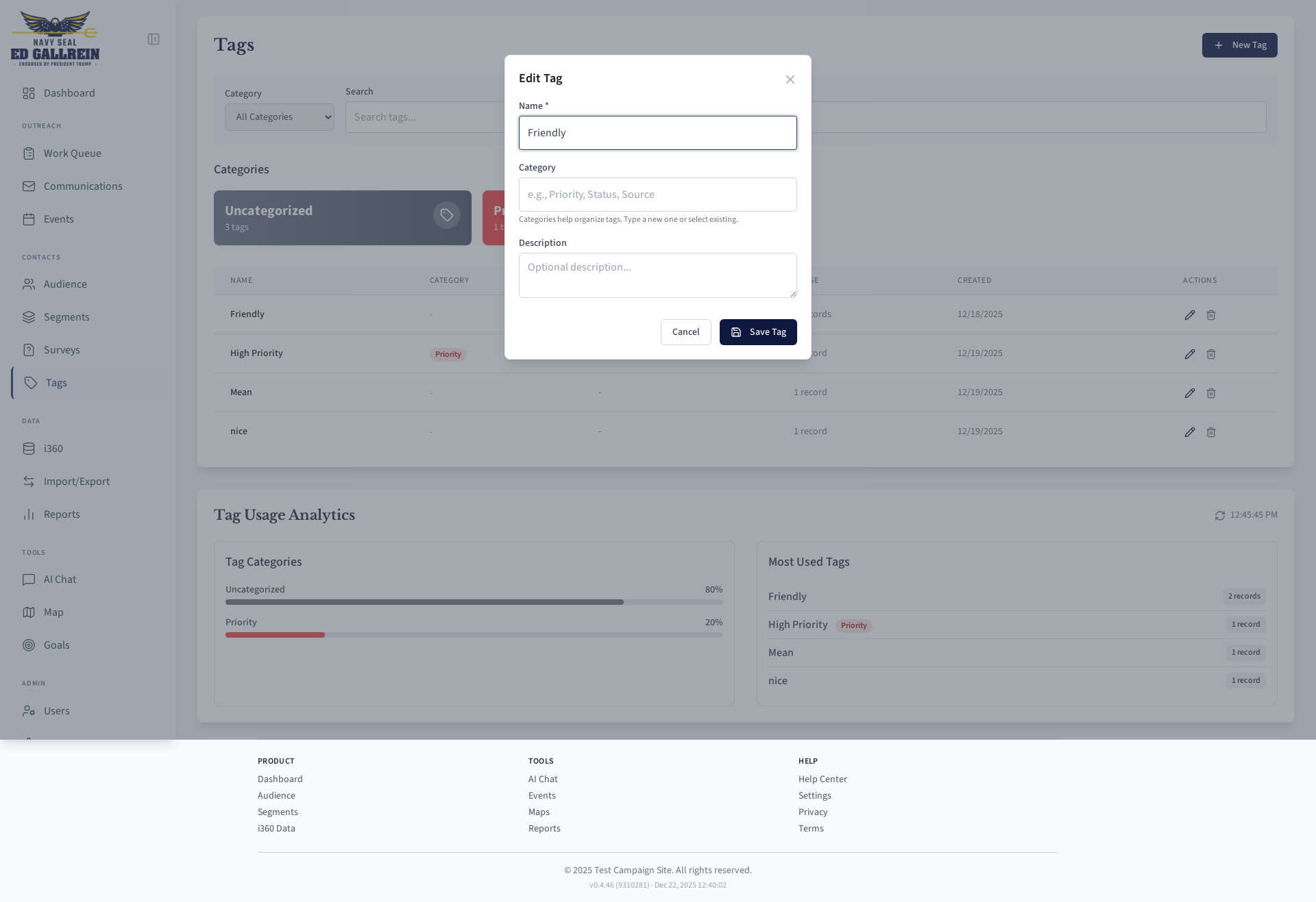 Tag editing modal.