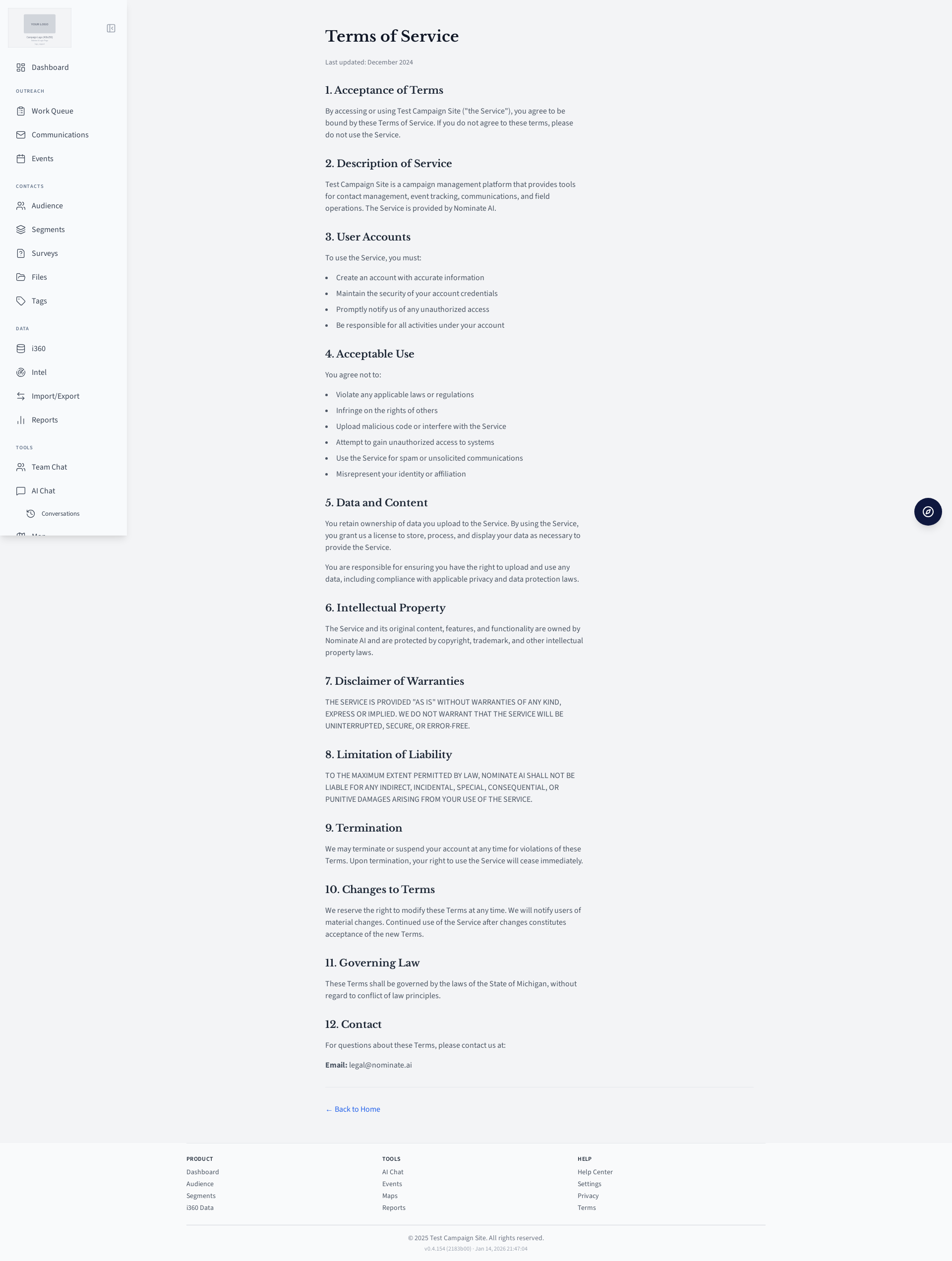 Terms of service page.