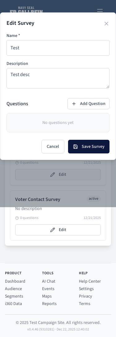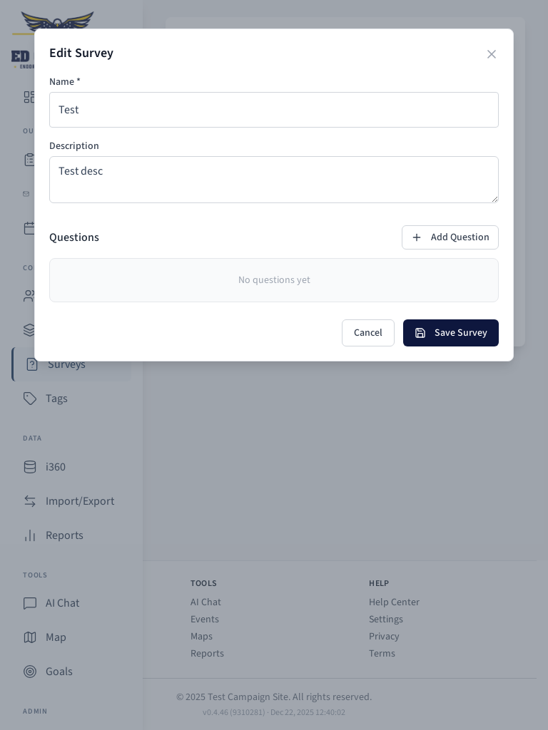 Survey editing modal.